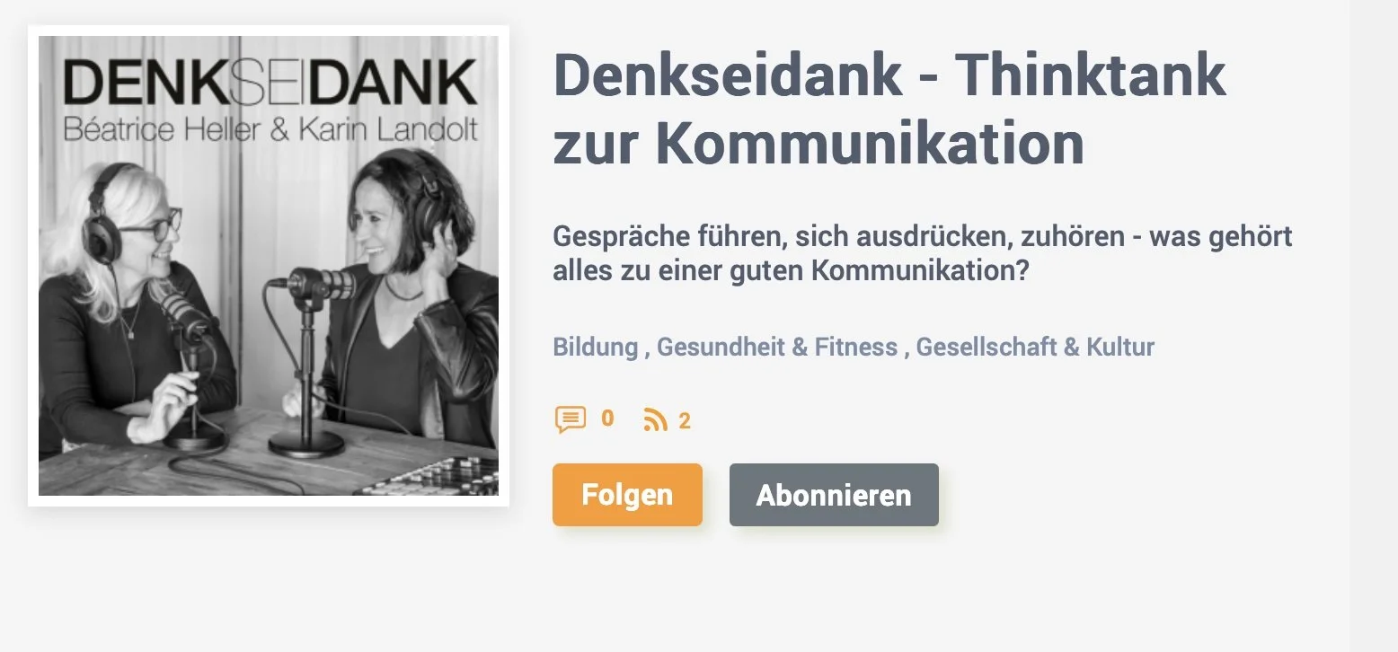 Karin Landolt, Journalistin und Moderatorin, und ich denken laut über Kommunikationsmuster nach, erzählen aus dem Leben, reflektieren persönliche Erfahrungen und stellen Fragen, die verbinden.